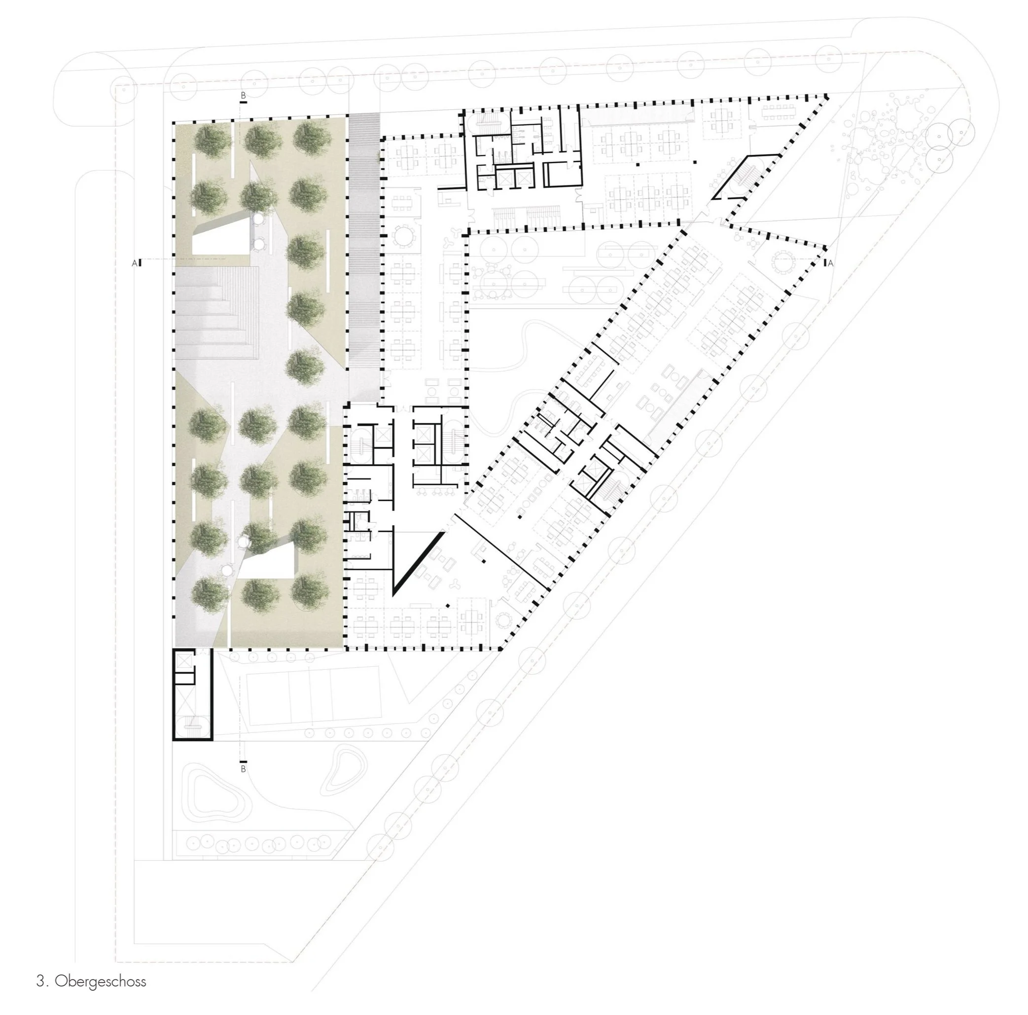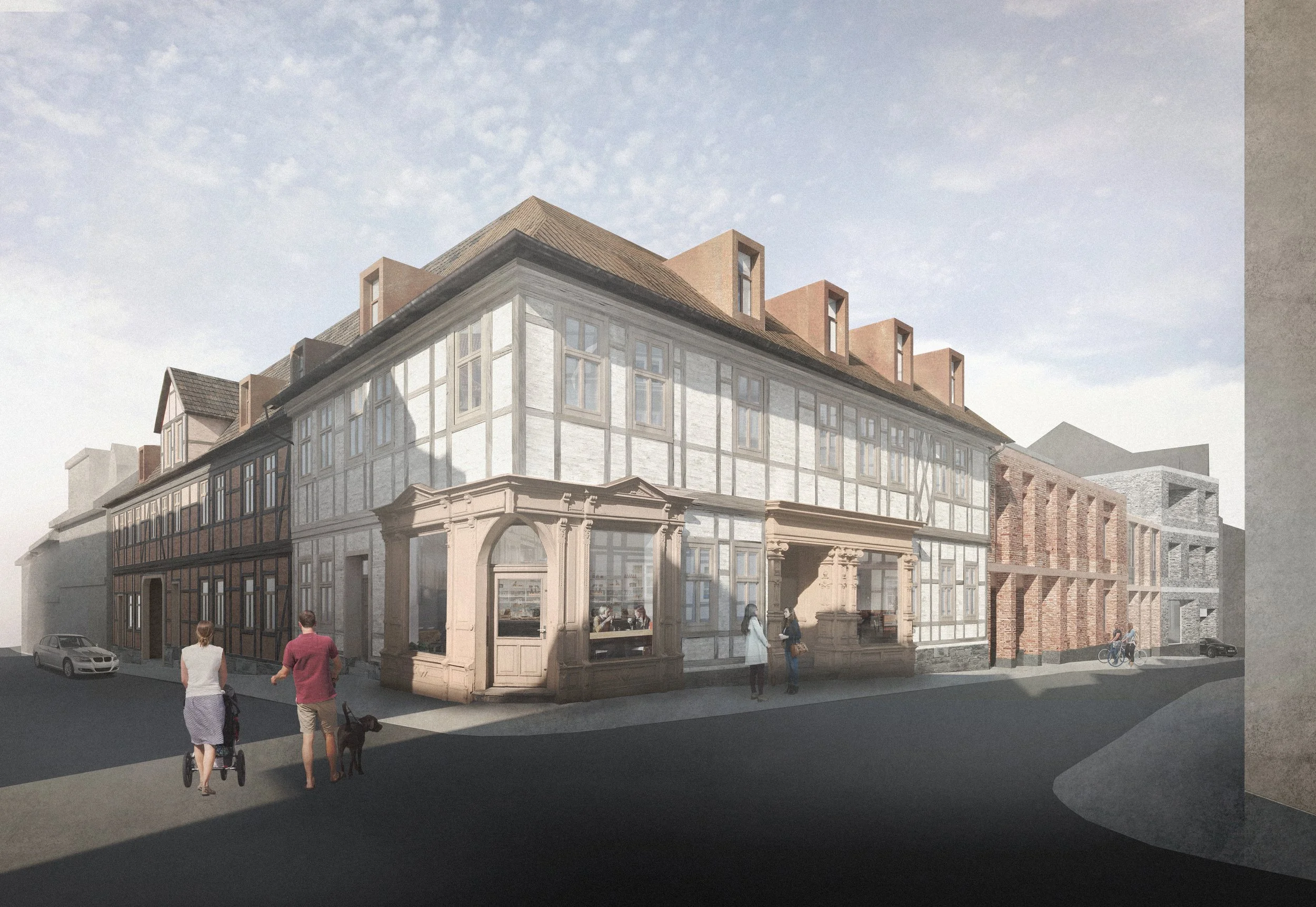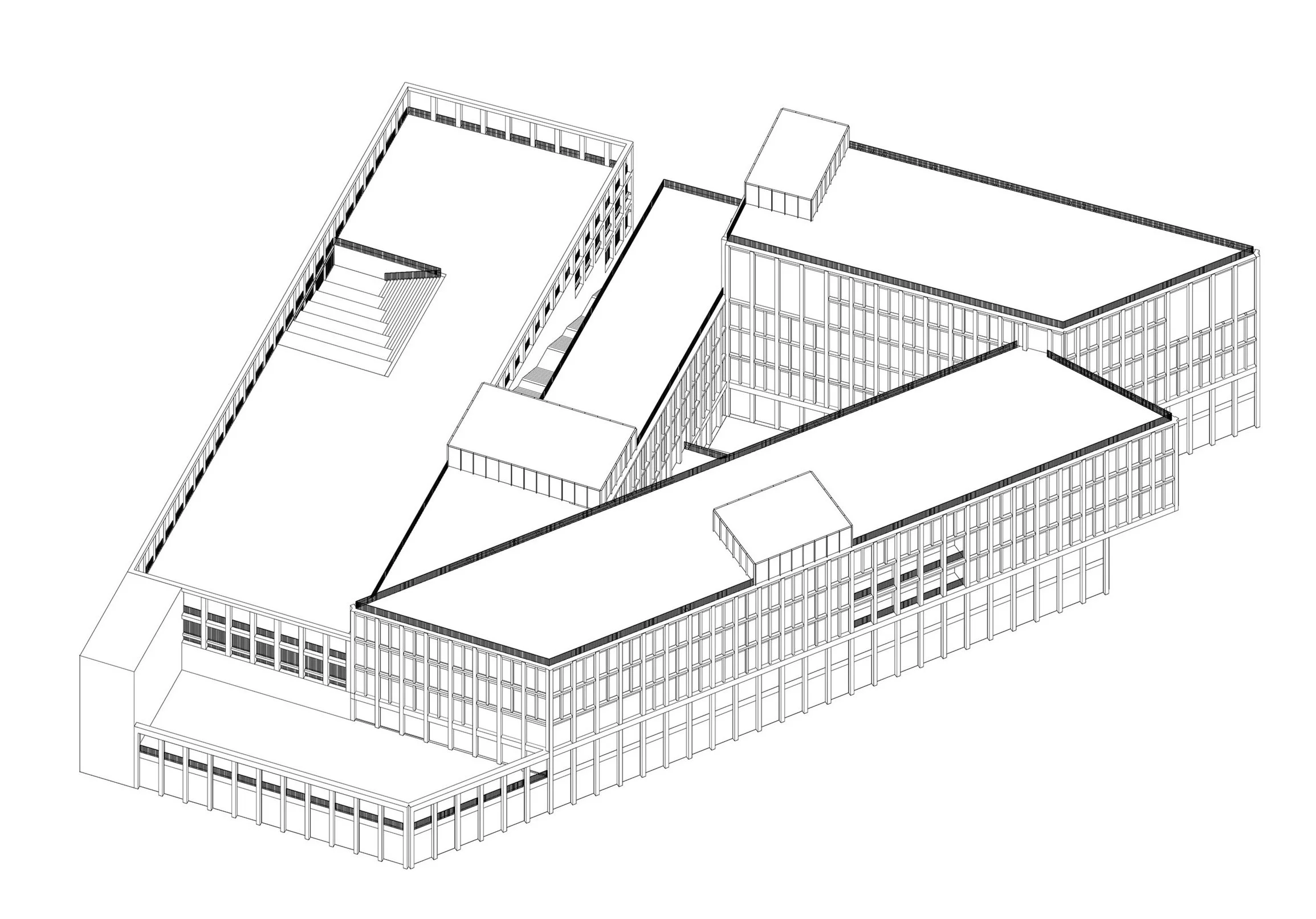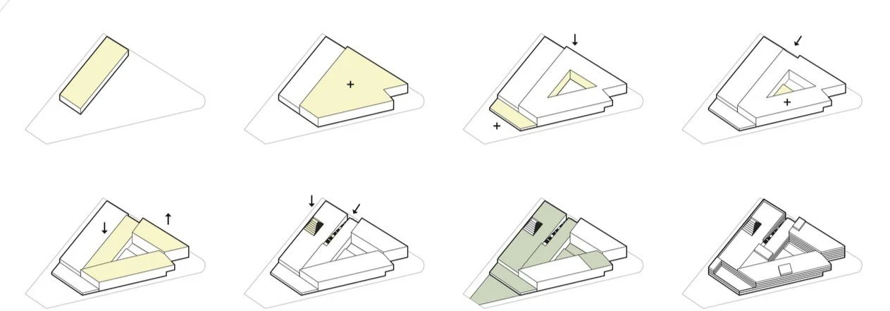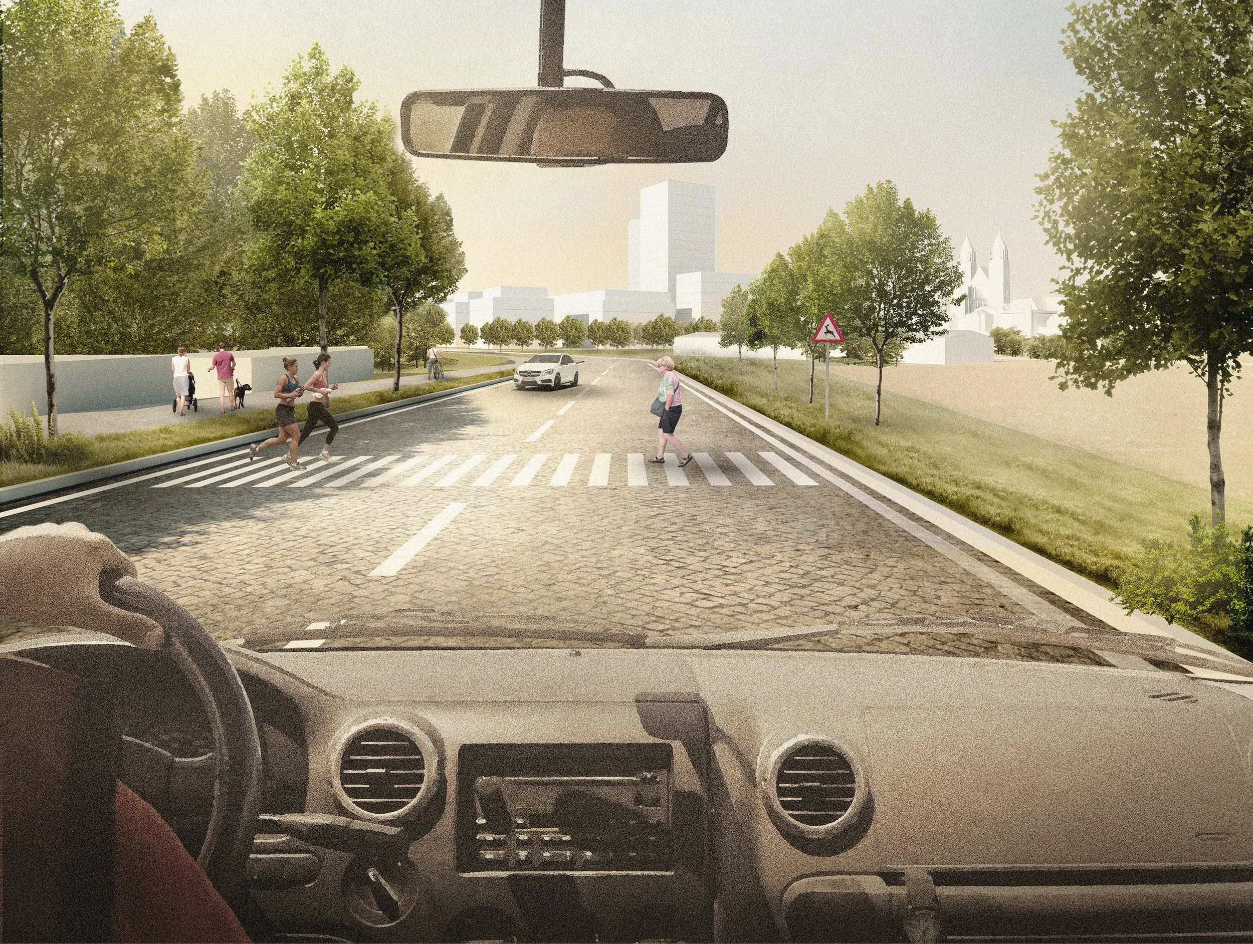 Masterplan for a plot in the German city of Magdeburg. Our proposal includes high quality public spaces and mixed use (residential + co-working + office) buildings. Designed with an aim to connect two disjointed areas of the town, the proposal reinstates a modern interpretation of the once existing city wall generating a space for commerce within it. Accessibility for all and sustainability are at the core of the design.